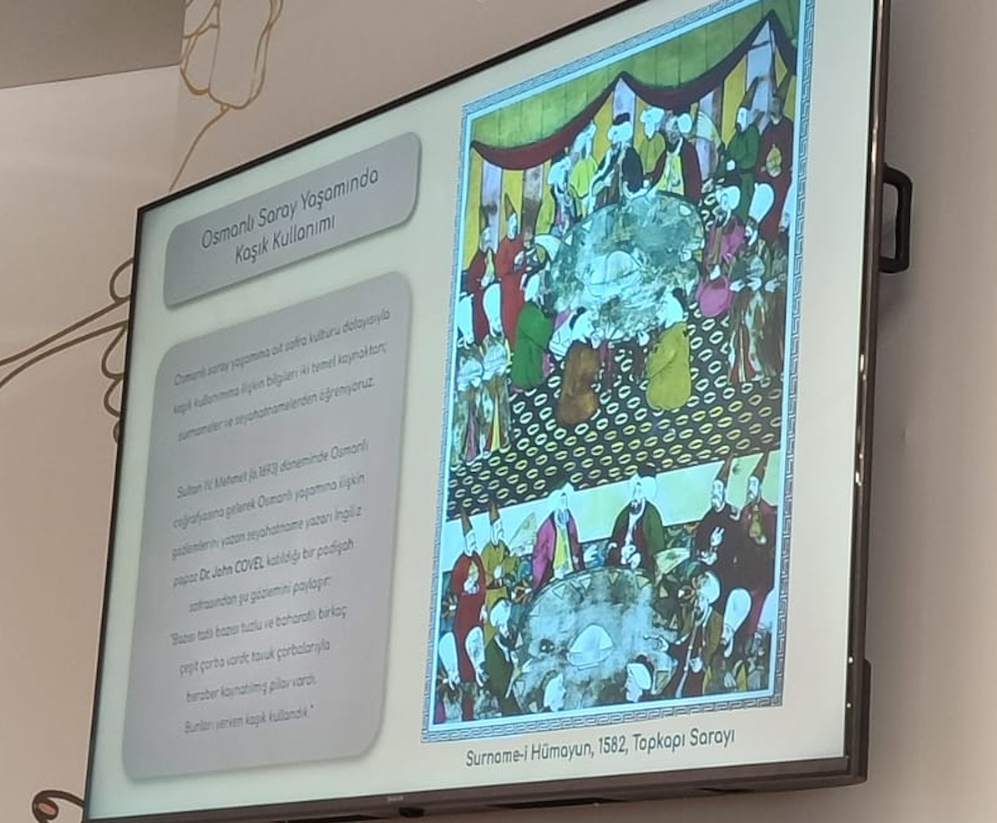 İş Saray’a doğru gittiğinde, Hindistan cevizi kabuğu, kemik, kehribar, sedef, balina kemiği, gergedan boynuzu, sığır tırnağı gibi organik malzemelerden yapılan üstün sanat eseri şeklinde karşımıza çıkan kaşıklar görüyoruz.”
