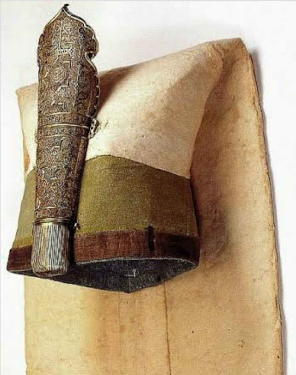 Yeniçeri başlıkları keçeden yapılır ve adına da ‘börk’ denir. Bu ‘şapkaların’ önünde gördüğünüz metal parçanın adı da ‘kaşıklık’mış. Yeniçeriler seferde buraya bildiğiniz kaşık koyuyorlarmış yani.
