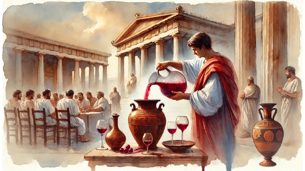 Bu yüzden Antik Yunan’da saf şarap içmek barbarlık ve aşırılık olarak görülür, genellikle üç birim suya bir birim şarap oranında karıştırıldığı söylenir.